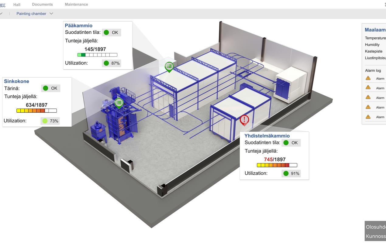 Automatyczny monitoring stężenia par VOC w kabinie zapewnia dobre warunki pracy malarzy i bezpieczeństwo kabiny, optymalizując cyrkulację wentylacji.